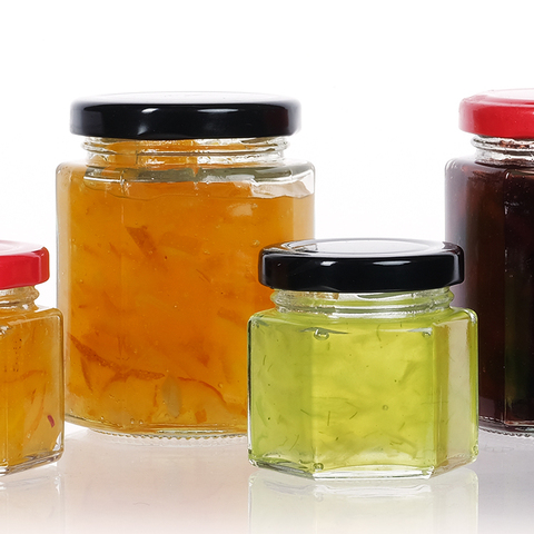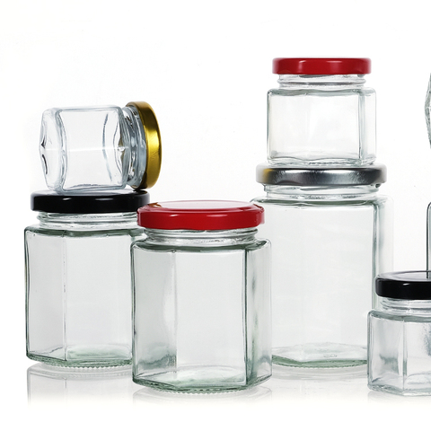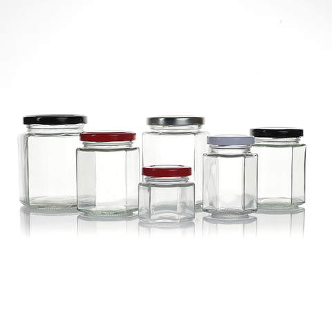 Chất Lượng Cao Tùy Chỉnh Hình Lục Giác Hình Dạng Lọ Thủy Tinh Cho Mật Ong Mứt Thực Phẩm Lưu Trữ Với Nắp